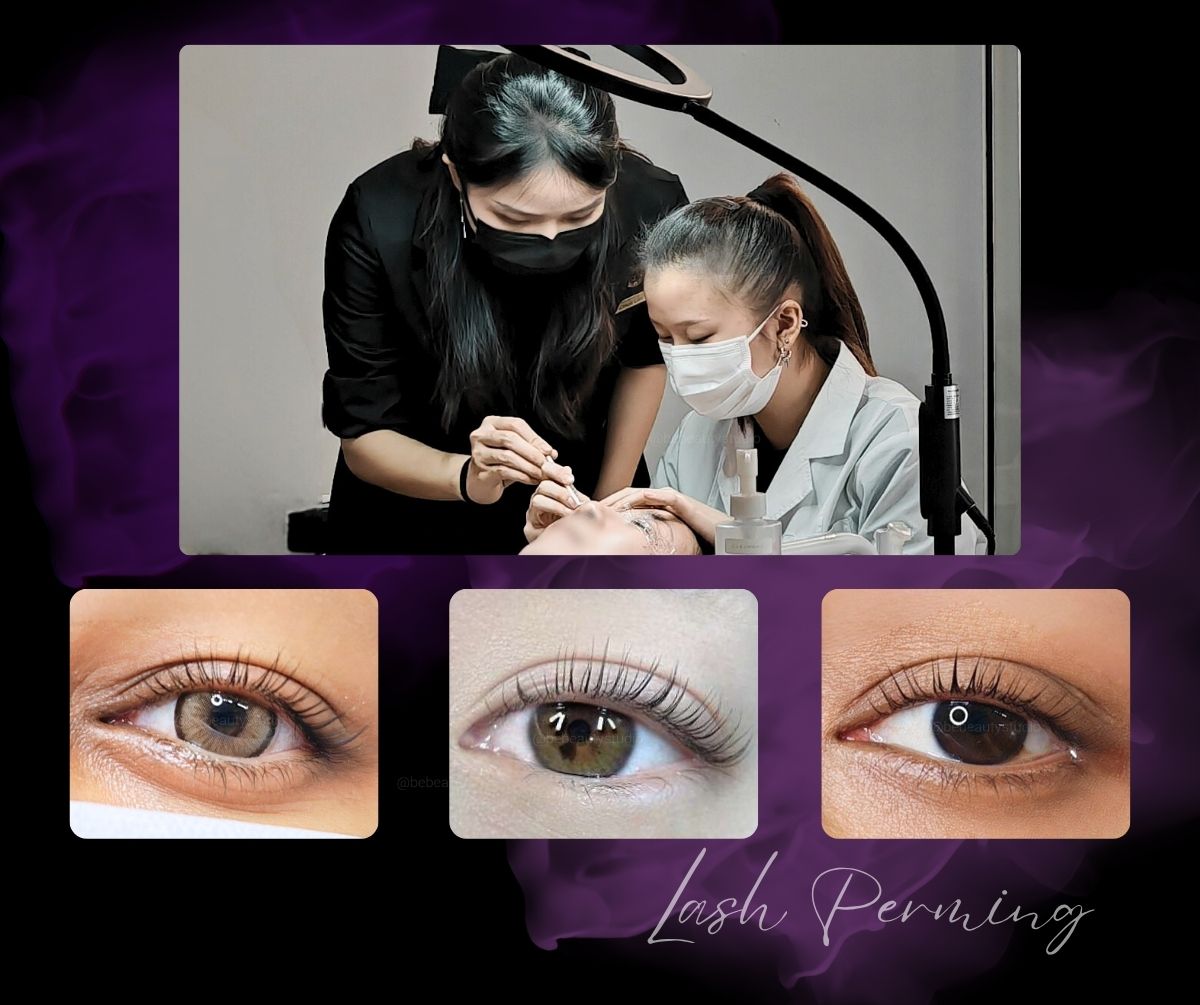 Lash perming or lash lift, is a cosmetic treatment to enhance the natural curl of the eyelashes. It involves curling the lashes upwards from the root using  a specialized tools. During a lash perming treatment, silicone pads or rods are used to lift the lashes upwards. A perming solution is applied to break down the bonds in the hair and reshape the lashes into a curled position, called keratin method. This is followed by a neutralizing solution to set the curl.